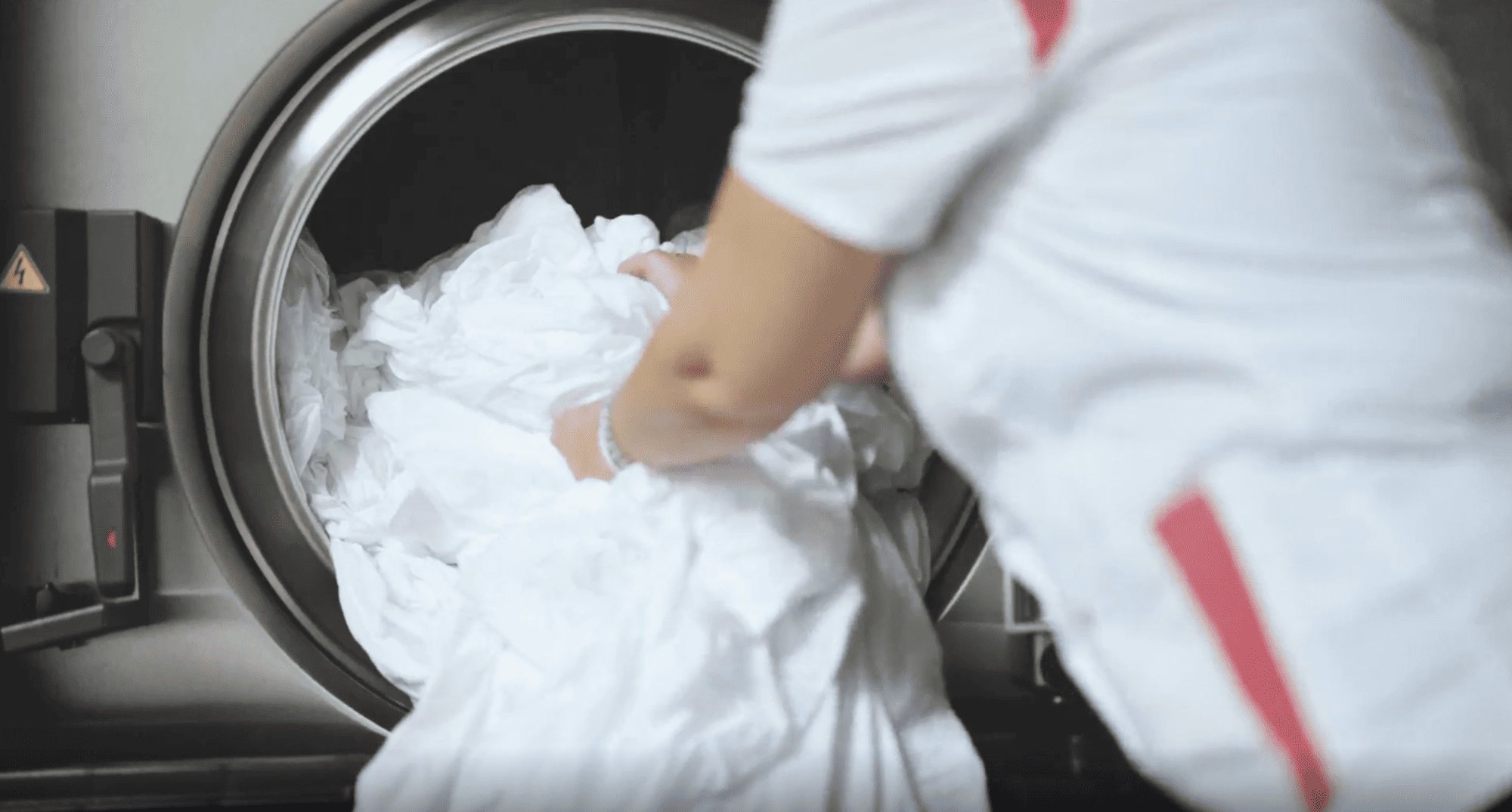 Le linge est désinfecté, rincé et purifié contre toute trace chimique résiduelle.