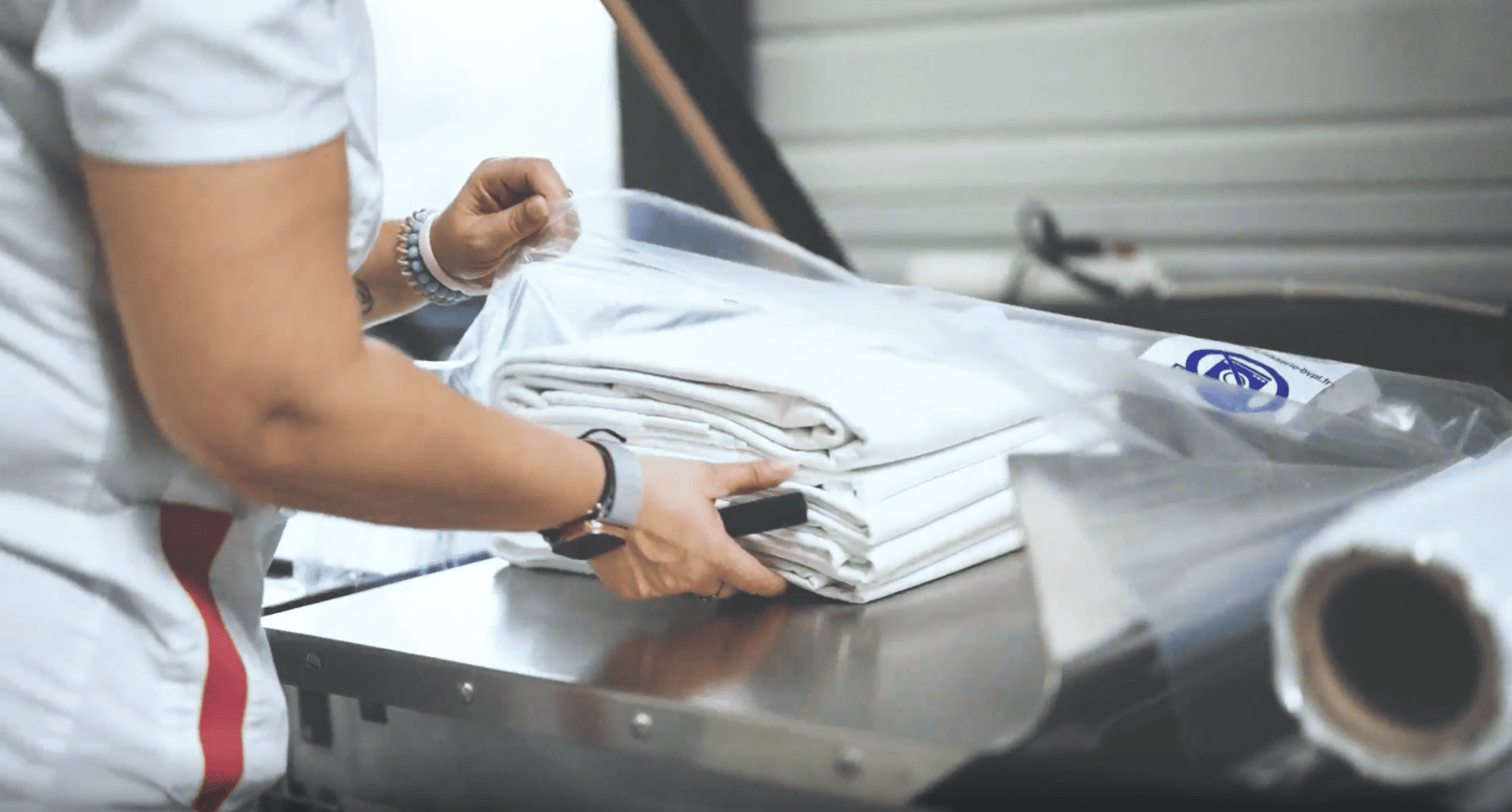 Chaque vêtement est emballé individuellement sous film plastique soudé, garantissant une hygiène optimale jusqu’à la livraison.